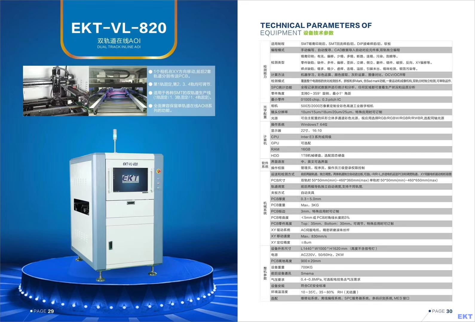 一.EKT-VL-820型號在線雙軌AOI設備技術參數
